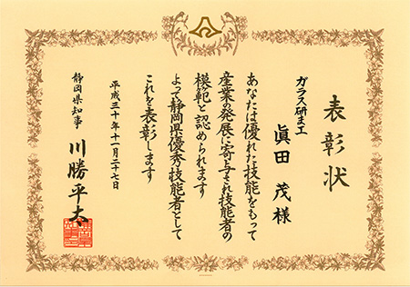 2018年11月 弊社社員が静岡県優秀技能者として表彰されました(クリックして拡大)