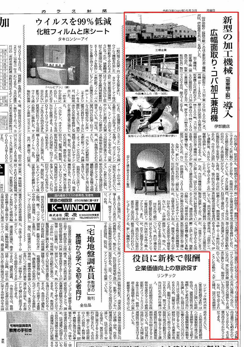 2021年5月 業界紙(ガラス新聞)へ掲載されました(クリックして拡大)